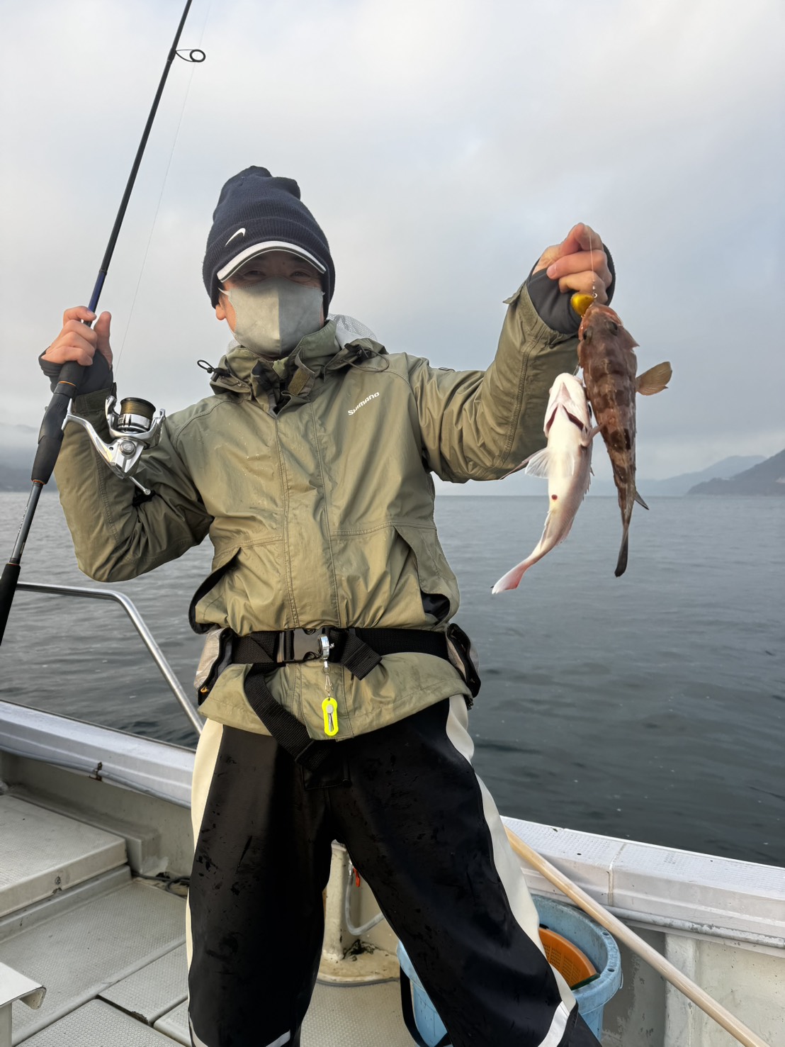 この時「遊漁船の船長もめったにお目に掛かれないと言っていた」にひとつの仕掛けに2匹の魚が釣れるという離れ業。
